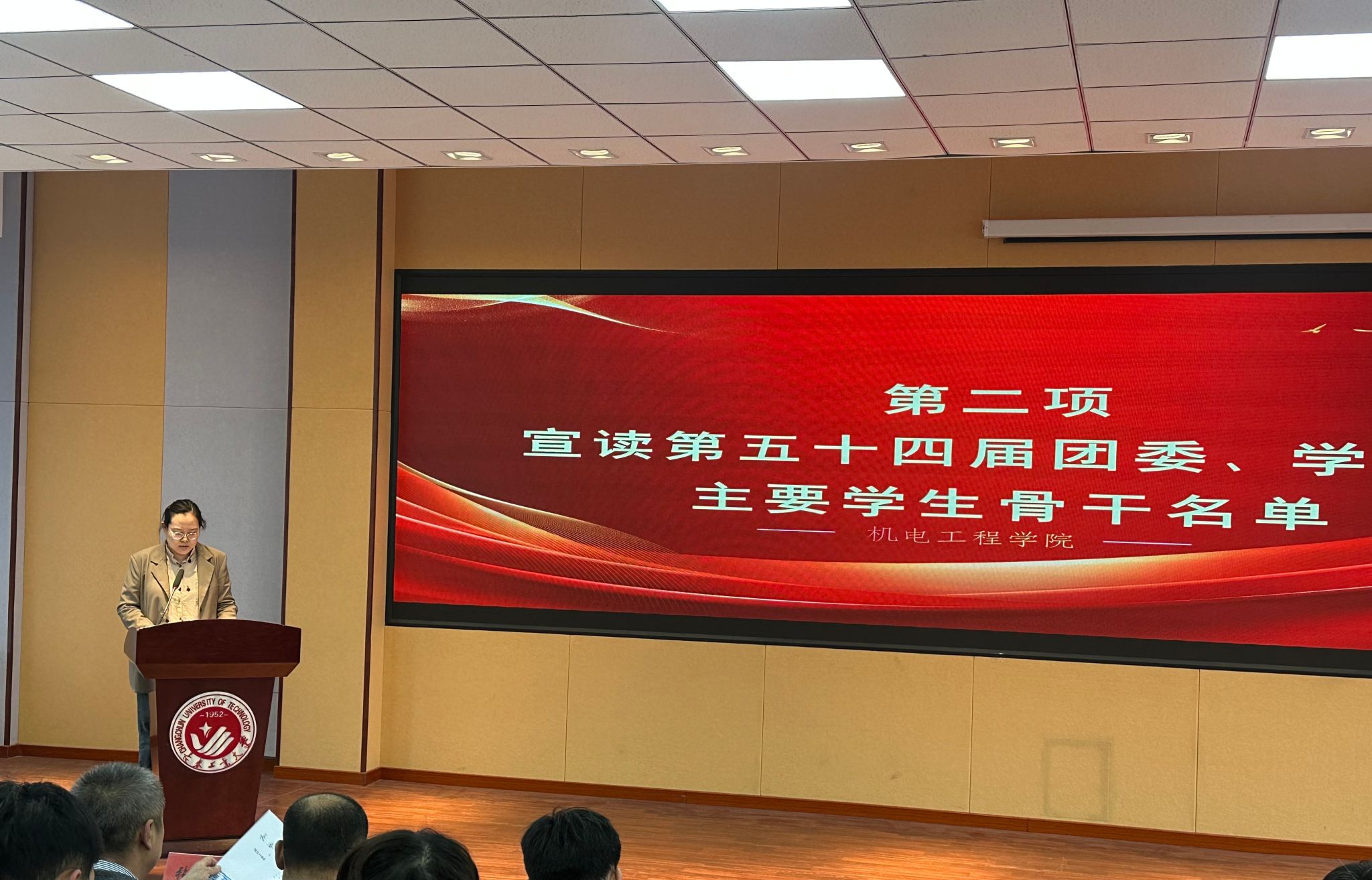 张龙娇老师宣读第五十四届团学组织主要骨干名单