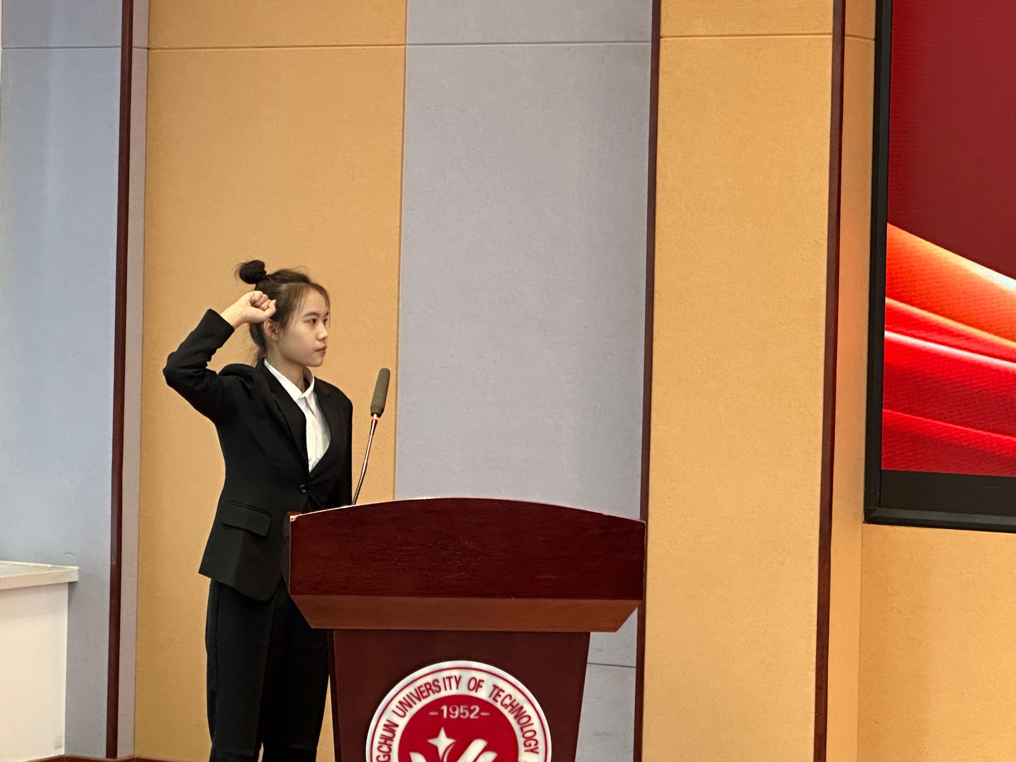 第五十四届员工会主席团成员朱秋悦带领全体员工干部宣誓