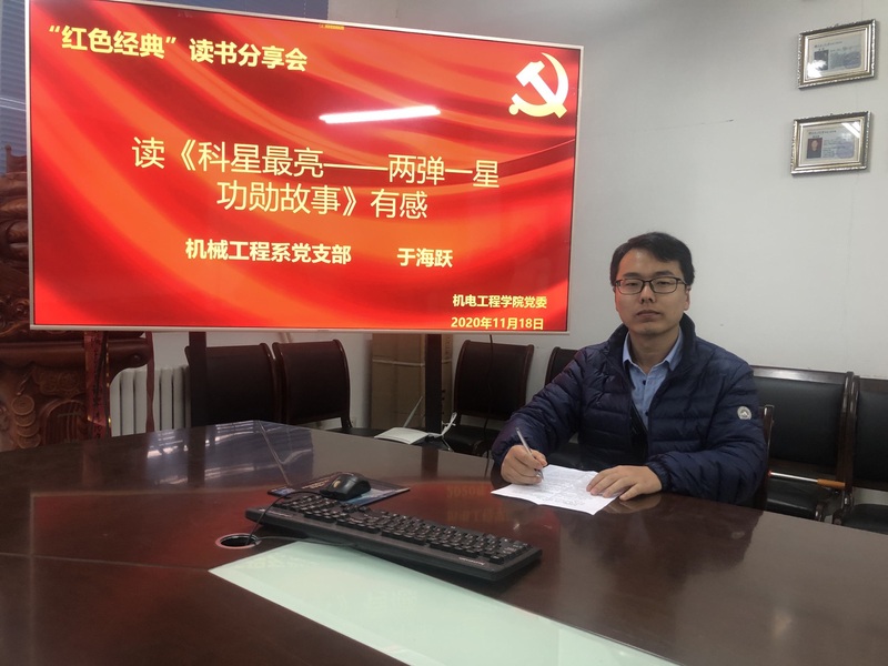 此次分享会分别由赵巍谈读《中国共产党历史》感受、于海跃谈读《科星最亮——两弹一星功勋故事》感受,两位教师分别从不同角度根据读书心得结合自身工作谈出了感受及启发。不同的书籍,不同的故事,在经典中阅读历史,在历史中感怀经典,三次的读书分享会到此拉下帷幕,让全体教师体会到了红色经典书籍的可贵与感人,重温了革命年代的岁月,更加珍惜当下的幸福,并且激发了大家的读书热情,大家的政治觉悟均得到了很大的提高,更加坚定了追随红色足迹,传承革命精神的决心,为实现中华民族伟大复兴中国梦而不懈努力。