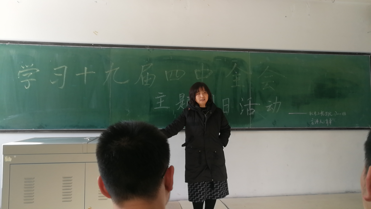 老师们从十九届四中全会背景、会议主要内容、会议要点三个方面带领同学共同学习了十九届四中全会精神,要准确把握和理解四中全会精神,深刻领会我国国家制度和国家治理体系的十三个方面显著优势和具体要求,深刻领会坚持和完善中国特色社会主义制度、推进国家治理体系和治理能力现代化的总体目标,将四中全会精神与工作学习。