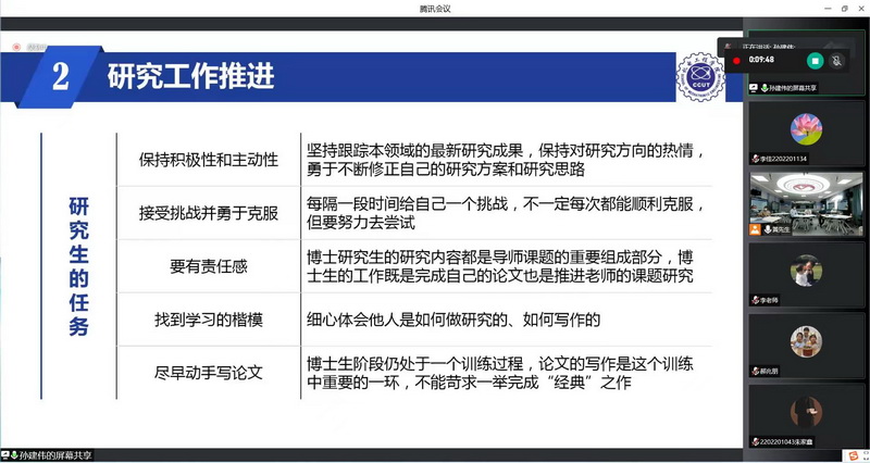 本网讯(通讯员 张龙娇)为了引导新生更好的适应研究生生活,了解公司的基本情况,培育研究生树立崇高理想和形成良好学风,9月12日,mobile28365举办了2022级研究生新生线上见面会,公司党政负责人及部分研究生导师参加了此次会议。